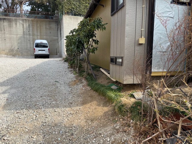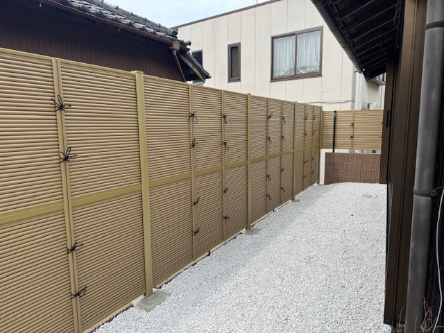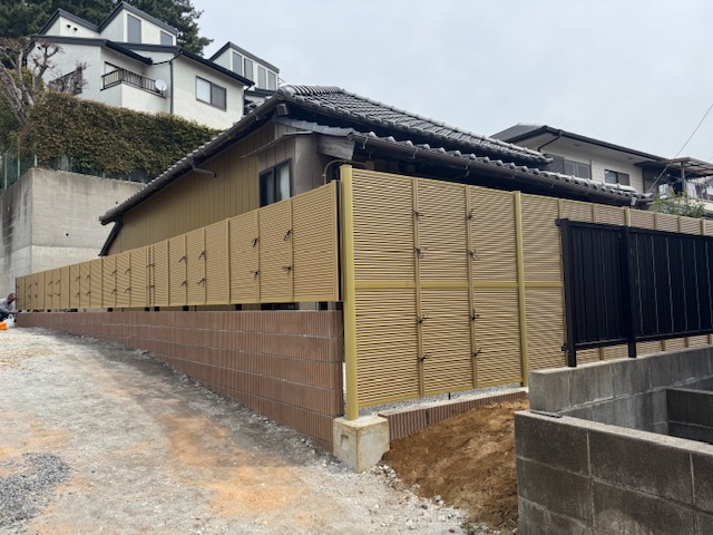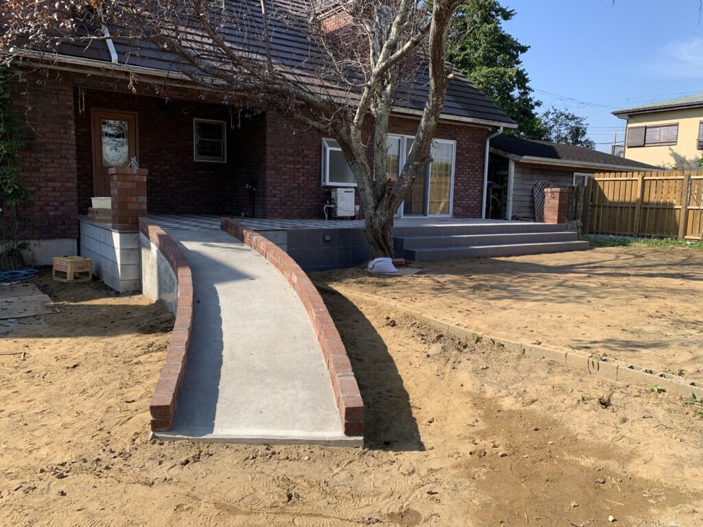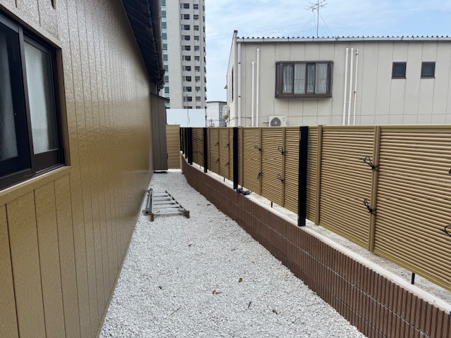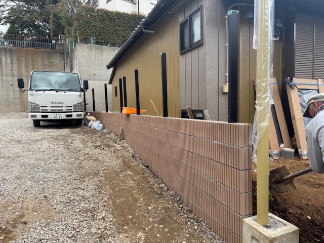 木の抜根から整地 化粧ブロック積み、フェンス取付 玉砂利敷きで高級感ある雰囲気になりました。