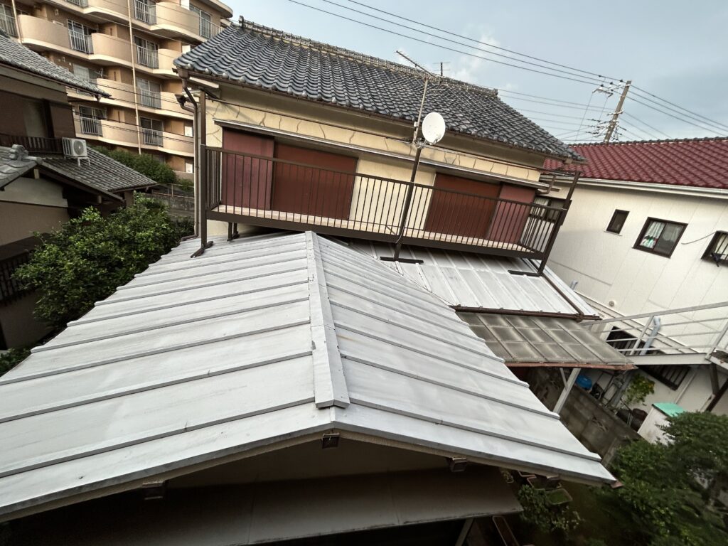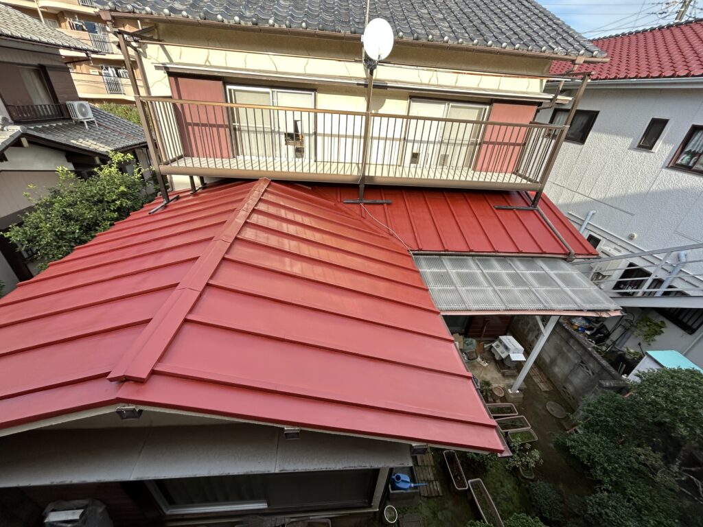 塗装工事 コロニアル屋根塗装 ガルバ屋根塗装 金属屋根塗装 M様邸 瓦棒屋根塗装 ユメロック2液 錆止め入れ3回塗り 塗装前 サビカット 施行後 外壁塗装 吹付塗装 S様邸 吹付塗装後 ローラーでボンタイル調模様つけ 屋根・板金工事 外構・エクステリア