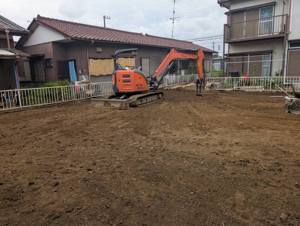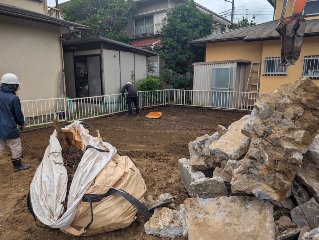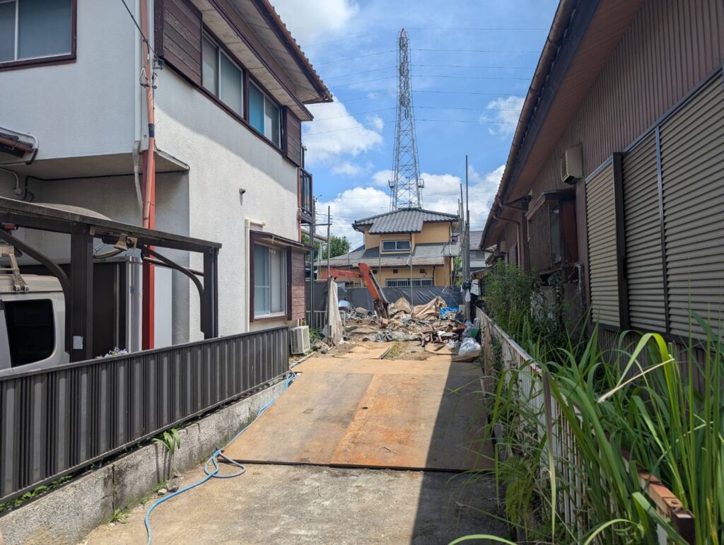 こちらのお宅は売買のための解体整地です。重機が入らない竿地です。隣地の方のご協力により重機を入れ解体しました。