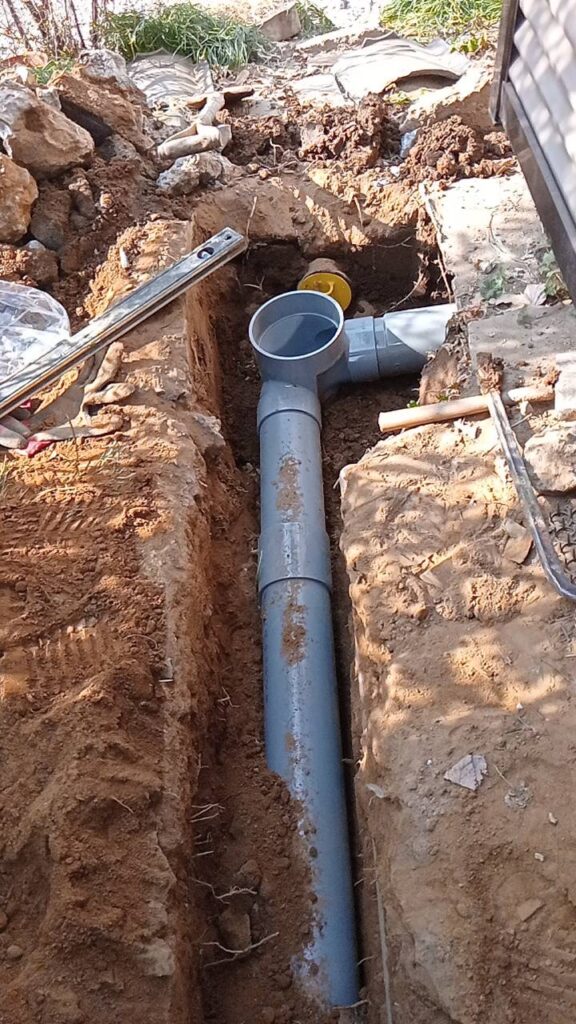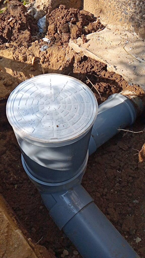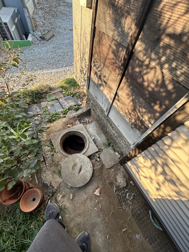 W様邸 モルタル桝から塩ビインバート桝 排水経路新設施工