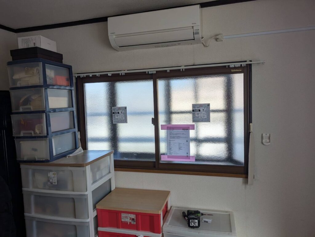 こちらのお宅はタイル浴室からユニットバスの工事をしたので、既存サッシが単板アルミサッシでした。冬は寒いそうなので、さらに浴室用の内窓をつけました。